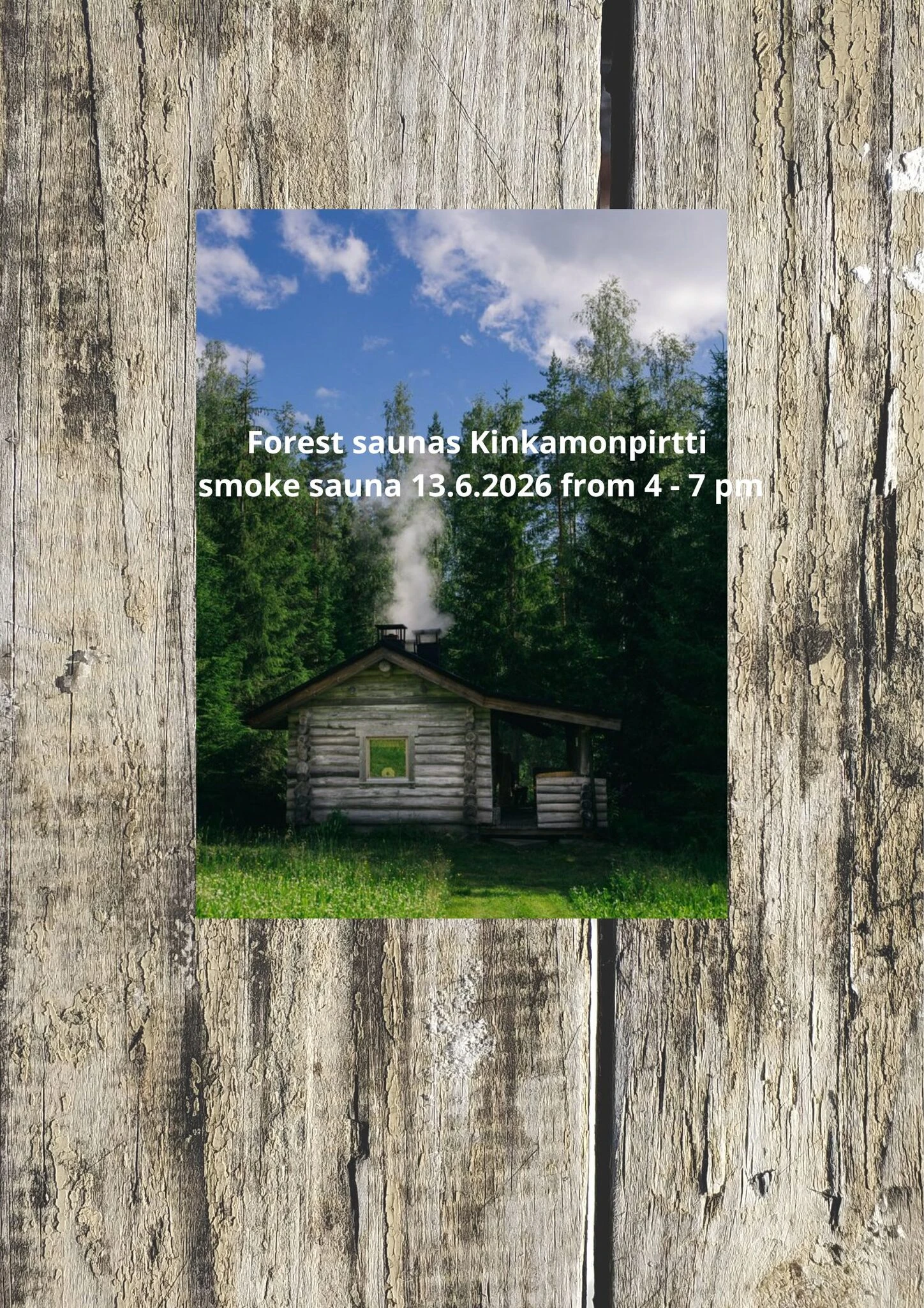 You can add depth to the experience by participating with Hannu in heating the smoke sauna. In that case, please arrive at Kinkamo at 12:00 noon on the sauna day to help heat the sauna.